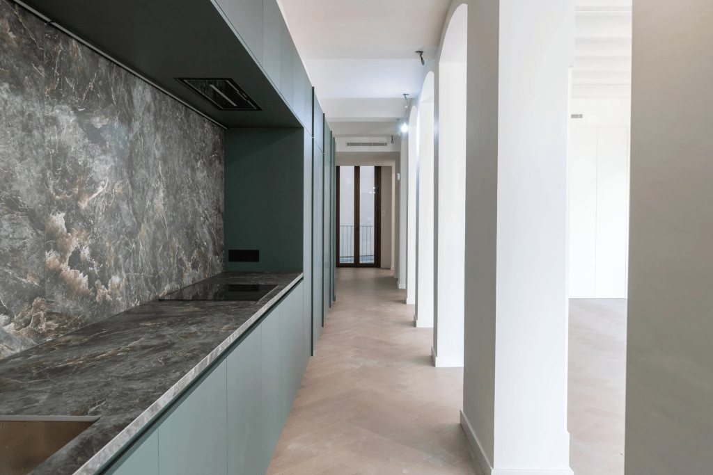 Cada apartamento de Rambla Catalunya 29, ha sido diseñado con un cuidado extremo por el detalle: techos altos, grandes ventanales, balcones con vistas privilegiadas y distribución funcional. La creación de una nueva planta ático, con terrazas privadas, y la incorporación de una galería moderna que dialoga con los arcos tradicionales elevan aún más la experiencia residencial.