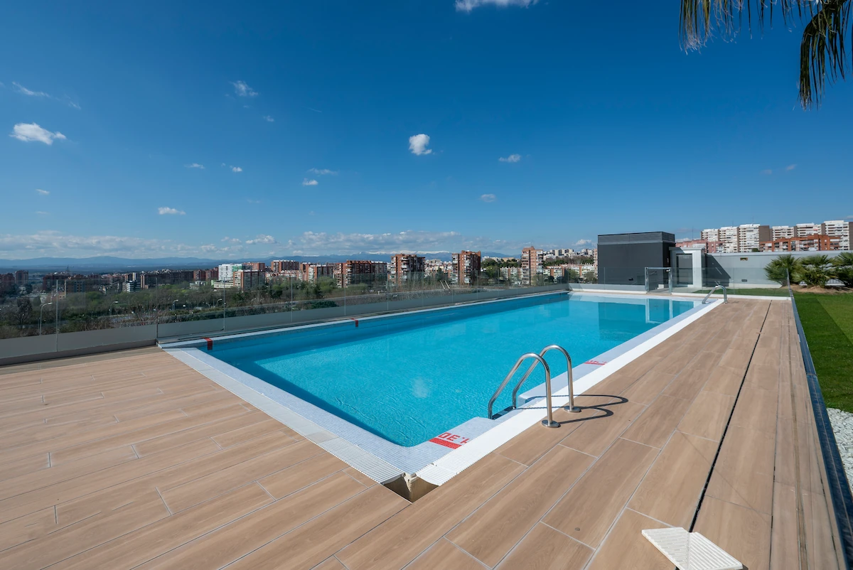 Skyline ofrece uno de los catálogos de amenities más completos de Madrid: piscina panorámica en la planta 25 con frente acristalado, piscina en planta baja rodeada de jardines, gimnasio totalmente equipado, zona coworking, sauna, rooftop panorámico acondicionado, lounge con vistas y servicio de conserjería 24 horas. Un conjunto pensado para disfrutar del ocio, el bienestar y una vida urbana de alto nivel.