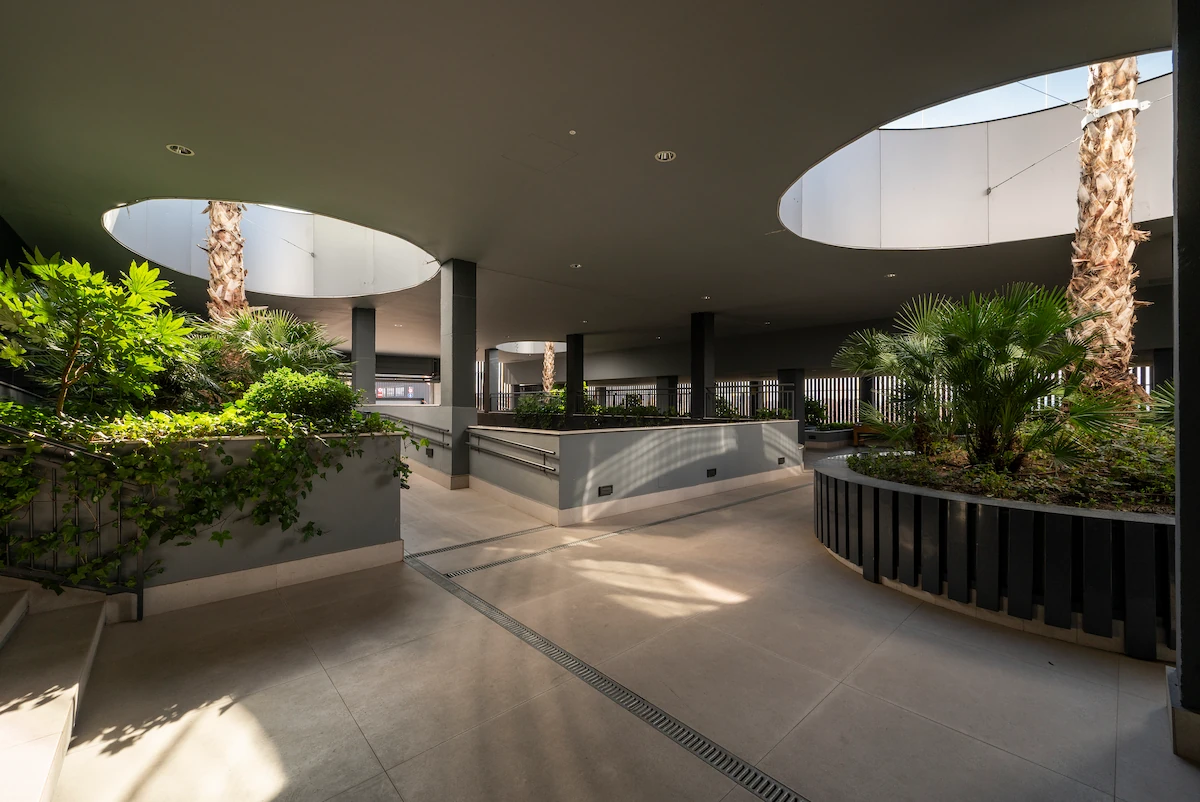 Los residentes disfrutan a pocos minutos del espacio multidisciplinar Caleido y su innovador campus vertical del IE, que ofrece una completa